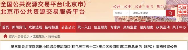 各位朋友,旧聚落改造又一波,涉及丰台6条街道数百栋旧建筑。 01.丰台区云岗街道 1.招标条件 本招标项目为中央企业第三批北京市老旧小区综合整治工程(标包352)(丰台区云岗街道)工程总承包(EPC),已经北京市住房和城乡建设委员会《关于确认中央企业第三批北京市老旧小区综合整治工程的通知》批准建设。投标人为北京星航机电设备有限公司,投资额2646.92万元。建设资金全部为政府补贴和企业自筹,比例为100%。出资比例ccapital为100%。该项目已满足招标条件,现面向社会公开招标或公开招标。欢迎有兴趣的潜在投标人(以下简称申请人)提交资格预审申请。二、项目概况及招标范围: 本次招标项目建设地点:北京市丰台区云岗街道规模:建筑面积以上:46955.76平方米;地下建筑规模:/;建筑面积:46955.76平方米;建筑高度:17;长度:0米。招标范围:工程总承包(EPC)按照投标人约定的标准、规格、工程功能、尺寸、竣工日期,完成工程施工图设计、工程施工、材料设备采购、施工图预算及造价控制、竣工验收、竣工备案、交付使用以及保修期内任何缺陷和质量问题的修复。一、招标条件 本项目为第三批中央企业综合整治项目t 北京市老旧小区项目(招标包352)(丰台区云岗街道)工程总承包(EPC),已经北京市老旧小区综合整治联席会议办公室[2024]号批准建设,建设资金来自国有企业(中央)自筹资金,项目投资比例为100%,招标机构为中国实业(北京)有限公司该项目已具备招标条件,现进行公开招标。特别邀请有兴趣的潜在投标人提交资格预审申请。二、项目概况及招标施工 本项目地点:丰台区云岗街道 本项目建设规模:46955.76平方米 合同概算价:2312.42(万元) 项目建设施工 施工:本项目248日历天等招标工作:完成本次云冈北区东里总区、云冈北区西丽39号楼、云冈南区东丽B号楼20号楼、云冈南区西里21、27号楼、云冈镇港南里11号楼的施工图设计与制造技术、材料设备采购、施工图预算与造价控制、竣工验收、竣工备案、交付、缺陷修复等工作。保修期内质量问题等 包(EPC) 丰台区东高高街 02、招标方案 1、招标条件 本项目为北京市第三批老旧小区中央企业综合整治工程(招标包365)(丰台区东高高街)工程总承包(EPC)。该项目获得北京市老旧小区综合整治联席会议批准建设招标人为京老九办发[2024]23号,投标人为北京航天机电研究所。 ,建设资金将来自政府补贴和企业自筹,拟委托公司开展招标工作,采取的招标方式为公开招标。二、项目概况及招标范围 本项目建设地点为:1、2、3号楼。 本项目建设规模:21457.18平方米,预计投资额:1989.21(万元) 本项目招标范围:按照投标人约定的标准、规格、项目功能、规模、竣工日期等因素,完成本项目的施工图设计、工程施工、材料设备采购、施工图预算和成本控制、竣工验收、竣工备案、直至交付,并对任何缺陷和质量进行修复保修期内的质量问题。具体包括:(1)节能工程(2)外窗护栏拆除(3)更换雨水管(4)更换单元门(5)楼梯墙面、天花喷漆、除锈后油饰(7)防护栏(6)改造(9)楼梯间电缆整治(10)防雷顶改造。 03、丰台区马家堡街道招标方案 1、招标条件 本项目为第二批央企北京市老旧小区综合整治项目(267标包)(丰台区马家堡街道)项目总承包(EPC)。本项目经北京市老旧小区综合整治联席会议办公室京老九办发[2024]2号文批准建设。 项目概况及招标建设 项目地点:北京市丰台区 项目建设规模:总建筑面积面积约9735.5(平方米),预计投资成本11,782,309(万元) 本项目招标:本项目拟采用工程总承包(EPC)方式承包。具体内容如下: (1)本项目设计范围:承包商应完成各专业施工图设计、后续服务(含竣工图)及承包商提出的其他服务。 。丰台区五里田大街 04、招标方案 1、招标条件 本项目为中央企业第二批北京市老旧小区改造综合工程(268号招标包)(丰台区五里店大街)工程总承包(EPC),已经北京市老旧住区综合整治联席会议办公室京老九办发[2024]号批准施工,拟委托招标工作和投标招标方式为公开招标。二、项目概况及招标地点 本项目建设范围:北京市丰台区 本项目建设规模:总建筑面积约10045.80(平方米) 预计投资:24,644,632(万元) 本项目招标范围:本项目拟采用工程总承包(EPC)方式承包。具体内容如下: (1)本项目设计范围:承包商应完成各专业施工图设计、后续服务(含竣工图)及承包商提出的其他服务。 。 05、丰台区云冈大街招标方案 项目招标单位:北京北方车辆集团有限公司 项目概况:本项目建设地点:丰台区云冈大街。本项目建筑规模为:88575.19平方米。以上发布内容均为垃圾内容y。项目概况、投资估算、招标范围、建设规模、预计发布招标公告时间等以最终实际资格预审公告或招标公告内容为准。招标内容:本次招标主要内容为:朱家坟五里6-18号老楼34进院、张家坟东巷1-6层、张家坟北巷1-12层全流程工程咨询服务,包括本项目的工程设计服务(方案设计、初步设计)、项目管理、工程监理服务、工程造价等服务。预计投资:4476.58.51万元 标段划分:/预计招标发布时间:2025年12月29日-2025年12月31日 丰台区长辛店大街 06、招标方案 项目招标单位:北京北方汽车集团有限公司 项目概况: 本项目建设地点:丰台区长辛店大街ct。本项目建筑规模为:120747.94平方米。以上发布内容均为暂定内容。项目概况、投资估算、招标范围、建设规模、预计发布招标公告时