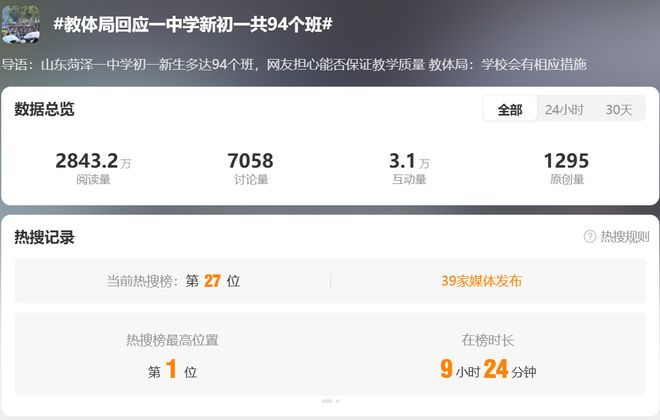 山东第一中学的一年级初中学生招募了94堂课,放学后有很多人!当地教育和体育局:在注册表高峰期,将有一些步骤确保教学质量!选择小学老师在许多地方搬到初中