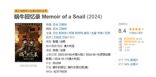 今年的动画电影在电影市场上很疯狂,例如“ Nezha 2”,“ Luo Xiaohei's Battle 2”,“ Langlangshan Little Monster”等。这款由奥斯卡导演亚当·埃利奥特(Adam Elliott)创建的粘土动画在迪亚曼(Douelan)的高分为8.4,并在全球赢得了70多个奖项和提名,包括2024年的2024 Anthony Animation Festival提名和2025年的2025 Academy of Academy of Academy of Actorized Animation Animation Animation。我不得不说,这只蜗牛上升缓慢,但他赢得了许多奖项!这部电影讲述了格蕾丝(Grace)的故事,一个想要收集蜗牛的女孩和她的双胞胎姐姐吉尔伯特(Gilbert)。兄弟俩从小就死于父母,并浪费了各种寄养家庭。看到它,我的鼻子开始生病,但导演显然觉得这还不够同情,所以恩典从小就被欺负了,因为他的先天性AP问题珠宝。格蕾丝(Grace)用蜗牛的坚硬壳作为安全的庇护所,与外界的恶意作斗争,但也像蜗牛一样闭上了她的心。我必须承认,这个隐喻是惊人的 - 令人惊讶的 - 当您遇到困难时不想在自己的外壳中忍受?抱歉,我的外壳可能堆满了信用卡账单和外卖盒,不像蜗牛那样诗意。直到老太太小蒂(Pinkie)出现时,格蕾丝(Grace)的生活就像一堆无情的水。与DA CollisionLading Sad Souls相撞的火花比烟花更聪明。 Pinkie奶奶的标语“肺”(据称是澳大利亚版本的“ DAMN”)已成为一种治愈代码。每当他为生活混乱而毁了这个词时,我心中就会听起来很笑声。最好的是使用乳房图像。格蕾丝(Grace)收集的蜗牛的每个外壳都是她的安全房子。从最初用来密封自己的用途,最终成为前进的武器,这种变化的移动不仅仅是一个纽约讲道。导演亚当·埃利奥特(Adam Elliott)实际上是一条不寻常的道路。在当前CGI和AI技术广泛的情况下,他坚持要手工完成整个过程。整部电影不使用任何CGI或AI技术。从角色的头发曲线到掉落的叶子到场景的模式,有200多个场景和100多种炭粘土,都是手工捏和塑造的,并真正拍摄了一个框架。这种愚蠢的做法受到观众的称赞,因为领先的明星充满了诚实。我认为导演可能是那种坚持使用Fei Ge通过书籍的人,即使全世界都使用智能手机。但是,老实说,这种固执的影响令人惊讶 - 令人惊讶 - 粘土的固体质地显示出真实的温度,比光滑,完美的CG动画更感人。没有华丽的特殊效果,但是笑着时嘴角的曲线和拐角处的眼泪哭泣时的眼睛比任何程序更感动。这应该看起来像动画。当IAT是受约束的动画电影时,电影公司还发布了一个特别的观看技巧:眼下的观众选择仔细观看。起初我发现它无法解释,对漫画的其他限制是什么?是否有小蜗牛不合适的图片?看完之后,我明白这部电影的“限制水平”不是关于暴力或色情的,而是关于如何展示现实世界的破坏和残酷行为。没关系,这是一部沉重的电影,这是一部沉重的电影,最好的风格导演艾略特(Elliot)是他的悲惨和喜剧风格。我们意识到笑声和眼泪,即使生活充满了荆棘,希望总是存在。例如,小指奶奶不仅具有传奇的生活经验,而且对生活的一种非常有用的态度。他把智慧的智慧赋予了恩典:生活只能理解,但必须前进。我写了这句话,并将其发布在冰箱中。关于鸡汤的流行报价“ i -refresh Day -Day”。谁适合“蜗牛回忆录”?觉得自己像蜗牛一样生活的人,总是固定壳而不是试图离开;需要哭泣然后治愈的人;人们厌倦了CGI动画,并希望看到手工作品的美丽;人们喜欢独特的风格,并且厌倦了传统的好莱坞动画美学;只想证明自己仍然是情感成年人的人。尽管如此,“蜗牛回忆录”就像蜗牛一样 - 开始放慢脚步,但是一旦您进入节奏,您就会被严重吸引。尼特的我们说:就像蜗牛一样,我们可以携带沉重的贝壳,但是我们总是可以紧紧地向前爬行。最后,看电影时请带一些纸巾,否则您需要用袖子擦拭眼泪。不要问我怎么知道。