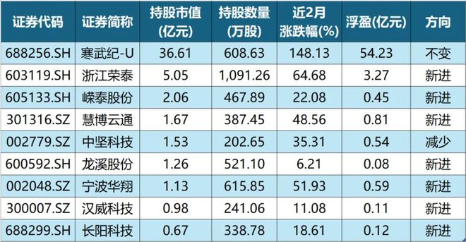 最近,由于AI CHIP公司领先的Cambrian对Cambrian的大量投资,Zhang Jianping再次专注于市场。在第二季度末,张正平地出现在9家公司的前十名股东中,2025年半年度坎布里亚人的报告显示,6月30日,张江(Zhang Jianping)在第一季度末持有的股票数量一致,并没有改变。恢复数据后,张正平在2024年第四季度首次晋升为十大传播的寒武纪股东。2024年底,他在今年的第一季度持有533.88亿股股票,并在今年的第一季度持有747,500米价的股份,并持有747,500股份的股份,这是他的股份。他的持股的市场价值上升至37.92亿元人民币。直到第二季度结束时,手柄数量一直保持不变。这股票价格绩效的判断,在2025年的第一和第二季度,寒武纪股票价格平均表现,分别下跌了5.32%和3.45%。这受到了影响,张江的股权市场价值在第二季度末略有36.61亿元人民币下降。但是,进入第三季度后,寒武纪的股价经历了持续的上升趋势。随着8月29日关闭,它比7月10日的最低点上涨了186.65%。如果张江在不出售一部分时,他的房屋价值超过90亿元人民币,其漂浮收入可能超过50亿元人民币。 In addition to Cambrian, Zhang Jianping also entered the list of the top ten transfer -Shareholders of many companies in the second quarter of 2025. Data shows that at the end of the second quarter, he appeared in the top ten transfer -shifted shareholders of 9 companies, with a combined -with -the -part -five -billion -billion -billion value of 5.095 billion.协调根据本赛季结束,对记者的粗略估计,并认为持有的股票数量没有改变,这些九家公司在过去两个月中为他带来了超过60亿元人民币的浮动收入。到第二季度末,除了坎布里安以外,著名的公牛张江·贾平(Sans Zhang Jianping)拥有许多个人股票,并出现在前十名股东。宁波·惠尚(Ningbo Huaxiang):张江股持有615.85亿股,股权比率为0.76%。该公司主要从事自动组件的设计,开发,制造和销售。该公司的股票于8月29日袭击了日落,自6月以来,日落增长了近90%。 Hanwei Technology:Zhang Jianping持有24.1亿股股票,股权比率为0.74%。该公司的业务涵盖了传感器,智能仪器,智能综合解决方案,家庭情报,健康和设备以及其他领域。 Huibo Yuntong:张江持有387.45亿股,股权比率为0.96%。公司向客户提供的产品和服务包括:软件技术服务,专业技术服务,产品和索引。 Longxi Co,Ltd。:Zhang Jianping持有52.1万股股票,股权比率为1.30%。该公司的业务主要集中于联合轴承,锥形滚轮轴承,齿轮/速度变速箱的研发,制造和销售,并通过处理其子公司来执行供应链服务和生产材料。 Zhejiang Rongtai:张江股持有109.126亿股,股权比率为3%。该公司的主要业务是对云母产品的各种高温性的研究,开发,制造和销售。主要产品包括用于新能量车辆的热失控防护材料的组件,小型家用电器的火灾隔热零件以及燃气带。新型的Inergy车辆杜斯特里是一个希格H-温度耐药性,可绝缘型云母材料应用新兴区域。 Rongtai Co,Ltd。:Zhang Jianping持有46.789亿股,股权比率为2.15%。该公司主要从事铝合金铝制精确铸件的研究,开发,制造和销售。 Rongtai Co,Ltd还在8月29日达到了阳光日至日限制,今年上涨了近130%。 Changyang Technology:Zhang Jianping持有33.888亿股,股权比率为1.18%。该公司主要从事反思性电影,光学基础膜,分离器和其他特殊功能电影的研究,开发,制造和销售。产品被广泛用于液晶显示器,电池和PAG -II田地。在交易的过去三天中,Chanyang Technology增长了20%以上。拒绝全面的公共信息有关阳光经济新闻的全面信息:本文的内容和数据供参考Y,不构成投资建议。请我在使用前进行验证。基于此的操作自负。